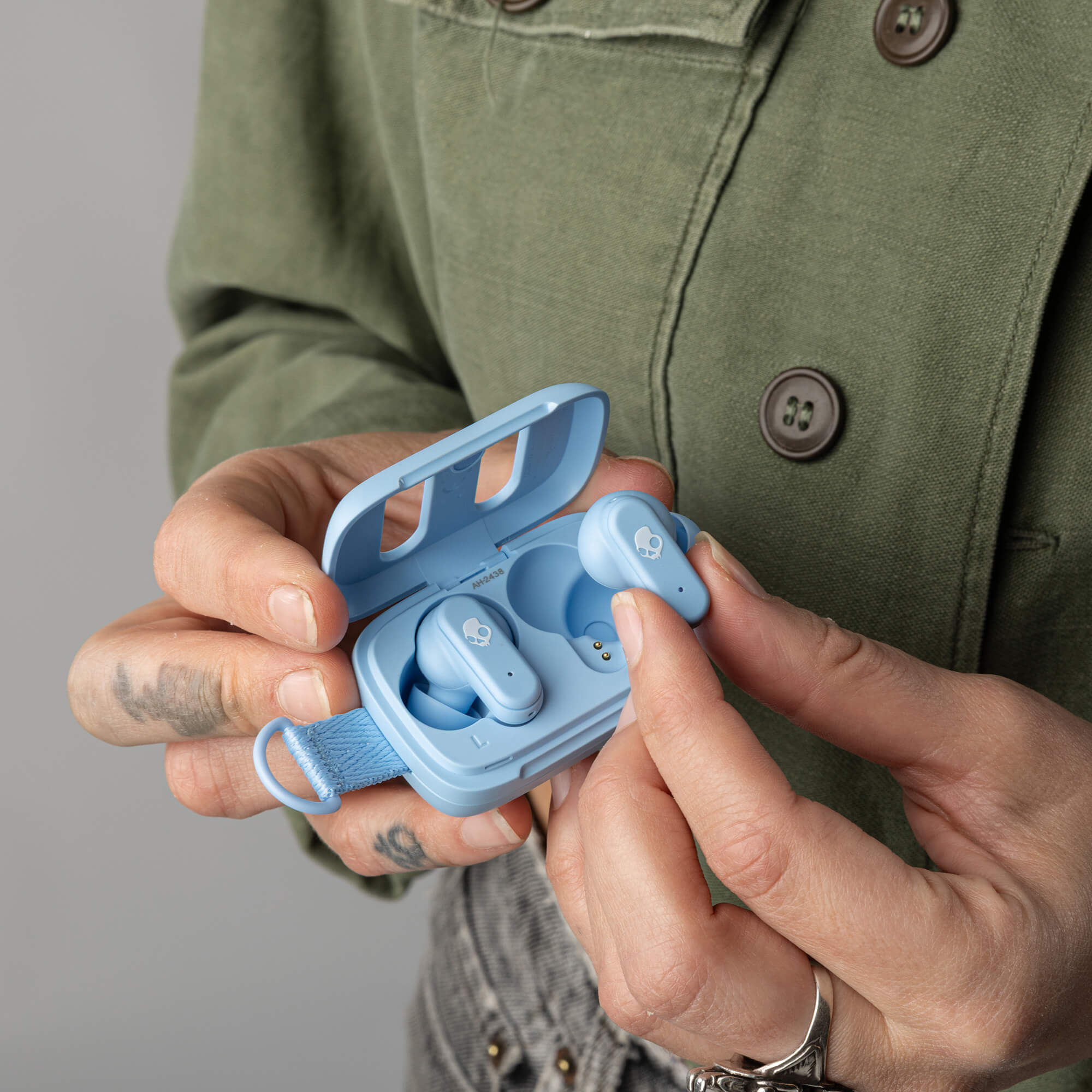 Skullcandy’s Dime 3 true wireless earbuds come with 20 hours of total battery. a built-in microphone. sweat and water resistant construction. Tile? tracking technology. and Bluetooth? 5.3 connectivity.