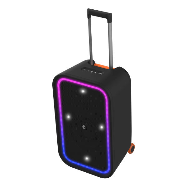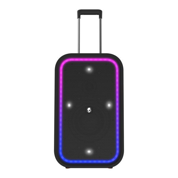 Looking to go big? Stomp XXL is so big it has wheels. It’s packing a massive 8-inch driver with Bass Boost. an LED light show. and an included karaoke mic for when the party really gets rowdy. Need even more sound? Link to another Skullcandy speaker for true stereo or up to 99 for a full-blown rave.